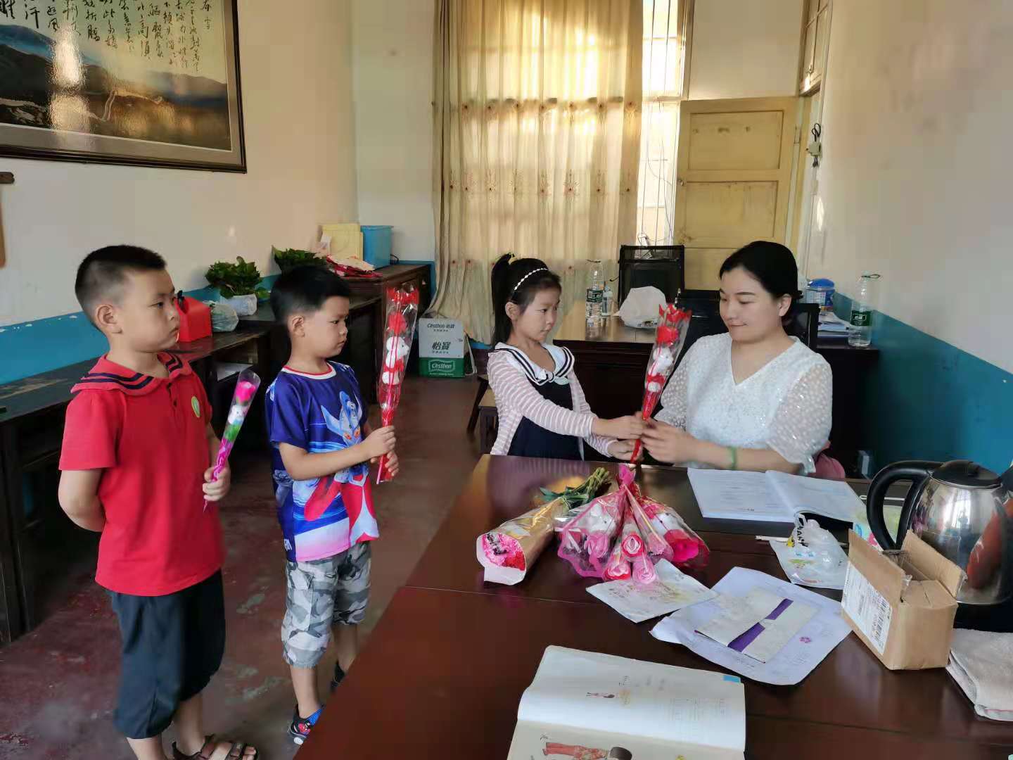 本网讯 9月10日,是第37个教师节,清晨,冷市镇大桥学校校园广播里传来悦耳的歌声《小小渡船》,亲爱的老师,您就像一个摇篮,把我们渡向希望的彼岸……。上学路上,一群群活蹦乱跳的孩子手持鲜花、贺卡、精美的小礼物,兴高采烈来到学校。教学楼前显示屏,“热烈庆祝第37个教师节”,“祝全体教师节日快乐”,一行行鲜艳光彩夺目的大字映入眼帘。校园里,教师笑脸相迎相互祝福,学生鞠躬问候老师,祝福老师节快乐。不一样的节日,其乐融融、温馨快乐。 上午第一节课开始,负责政教工作同志在广播里号召同学们全体起立,向老师问好,祝福节日,问候老师。亲切问候声声入耳。课余时间,同学们走进老师办公室,为老师送上自制的温馨贺卡和鲜花。“感恩老师祝福节日”的小礼物,一声声祝福,一句句感恩,一曲曲赞美之歌,发自学生对老师的敬重之情,感恩之心。老师如父母,情深似海,爱生如子,大爱无疆。老师们在感受学生的美好祝福同时,深感教师职业的光荣和教书育人责任重大。(通讯员 黄超平) |