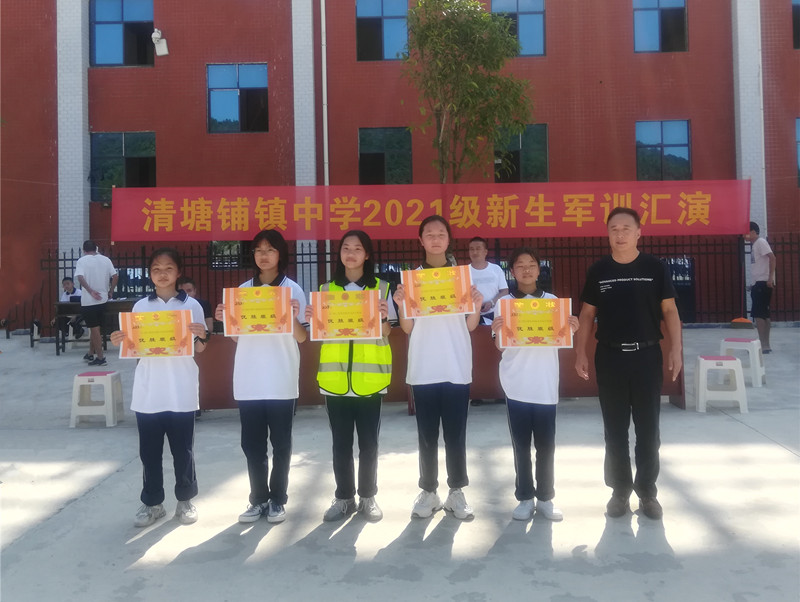 本网讯 9月9日上午,清塘铺镇中学2021级新生军训汇报表演暨总结表彰大会在学校田径场隆重举行。学校行政、参训教官、全体七年级师生参加,大会由政教处主任周伟宏主持。 在汇报表演中,参训同学以班为单位,分别表演了立正、稍息、跨立、齐步走、跑步走、跑操、手语操等课目。各班同学着装整齐、精神抖擞,以昂扬的斗志、饱满的激情,向大家充分展示了7天的训练成果。同学们直冲云霄的嘹亮口号和铿锵有力的步伐,是他们挥洒汗水、蜕变成长的最好证明,也展现了清中学子的良好形象与精神风貌。军训总教官对汇报表演进行了精彩点评。经过民主评议,本次军训评选并表彰了在内务整理、队列会操、跑操、综合评比等方面表现突出的优秀班级18个。 周伟宏在总结中代表学校向在军训期间付出辛勤劳动的全体教官表示衷心感谢,向一直坚守在现场的任课老师致以崇高的敬意,向顺利完成军训任务的新同学表示热烈祝贺。他说,在刚刚结束的汇报表演中,各班队伍阵容整齐、步伐矫健、军姿规范,充分展示了这次军训的丰硕成果。他要求,全体同学要把军训所培养出来的百折不挠、敢为人先的精神继续保持下去,积极投入到即将开始的学习和生活中去。最后,谭宏光校长宣布“清塘铺镇中学2021级新生军训胜利闭幕!” 全体同学与各教官依依不舍话别,感谢的掌声持续了很久很久……至此,清塘铺镇中学2021级新生军训工作顺利落下帷幕。(通讯员:张剑文 吴雄)