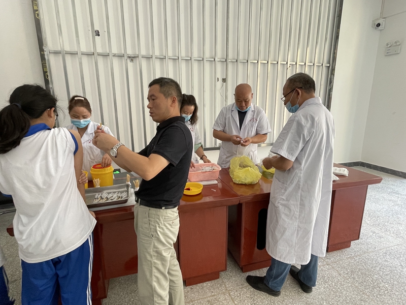 本网讯 9月8日,安化县人民医院公卫办流动接种分队的疫苗流动接种车开进紫薇中学,为该校12周岁以上的初中生提供新冠病毒疫苗接种服务。县疫情防控常态办医疗救治组组长杨乐山、东坪镇公卫办主任陆瑞德、东坪镇中心学校安全办主任黄剑到现场指挥疫苗接种工作。 学生们在老师及工作人员的引导下,测体温、录入身份证信息、领取接种疫苗注意事项告知单,分批前往该校行政楼一楼大厅临时设置的等候区、登记区、接种区按秩序接种疫苗,留观30分钟后回到教室。 黄剑说道,学生正处在综合训练期间,在接种之后要减少训练任务,注意时刻观察学生的身体状况,保证学生的安全健康。(通讯员 肖静和 李晴)