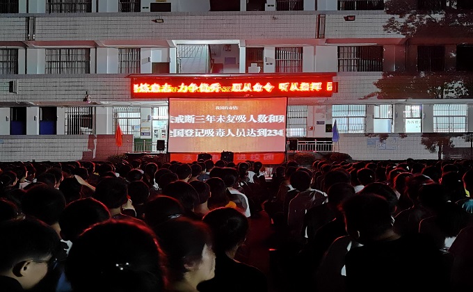 本网讯 9月3日下午,县电影发行放映公司总经理夏如新一行八人来到东坪镇中学,为七年级新生免费放映禁毒宣传片。该校校长刘志慧、学生处主任王强等学校领导与700多名师生一同观看。 禁毒宣传片用戒毒人员案例提醒学生谨防“黑手”投放毒品,注意保护自己,向学生介绍毒品的种类,提高学生识毒能力,接下来用吸毒人员身体脏器被毒噬的图片讲解吸毒对自身、家庭、社会的危害,最后介绍了我国的毒情。 本次禁毒宣传进校园活动让学生有了禁毒意识,加深了对禁毒知识的了解,提高对毒品的警惕性,为东中学子上了开学第一课。(通讯员 谌勇)