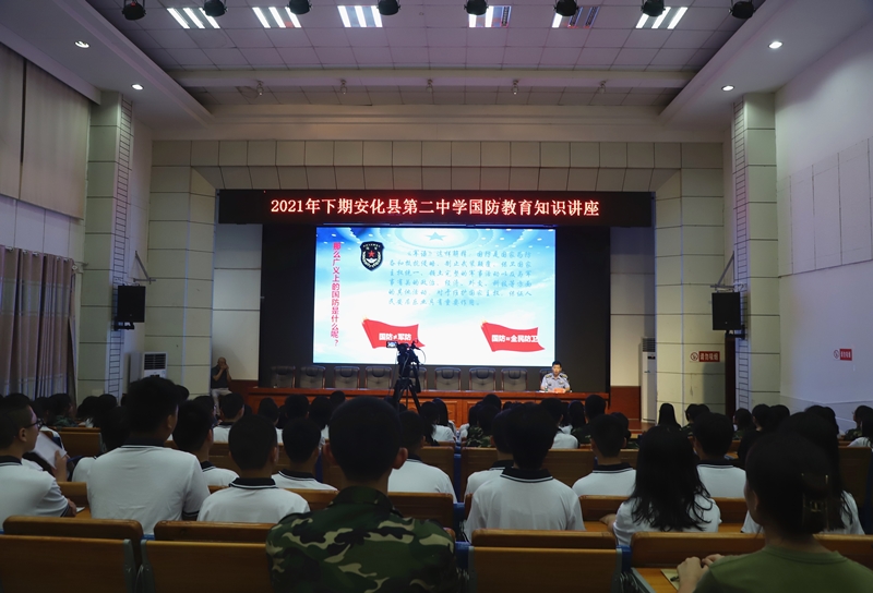 本网讯 为进一步增强新时代青年学子国防理念,弘扬爱国精神,近日,安化二中特邀安化县人武部上校、政治委员蒋斌,在该校科教楼多功能报告厅为高一新生开展了一场精彩的国防教育知识专题讲座。100多名学生及有关老师现场聆听,18个班同步直播。 讲座中,蒋斌以我国国防部新闻发言人答记者问所说的“青春不仅眼前的潇洒,也有家国与边关”为切入点,用生动的语言、典型的事例,对“国防是什么、国防防什么、国防靠什么,我们应该怎么做”四个话题深入浅出地进行了阐述,号召同学们要以“会泽百家、致公天下”和“刚毅坚卓”的精神,努力学好科学文化知识,随时听从祖国召唤,时刻准备着为建设强大的国防贡献智慧和力量。最后,蒋斌以习近平主席“任何人都不要低估中国人民捍卫国家主权和领土完整的坚强决心、坚定意志、强大能力”重要讲话与同学们共勉。 本次讲座,切实增强了学生国防意识,激发了同学们爱党、爱国、爱军热情,对普及国防教育知识、促进学生健康成长有着重要教育意义。(通讯员 陈中飞)