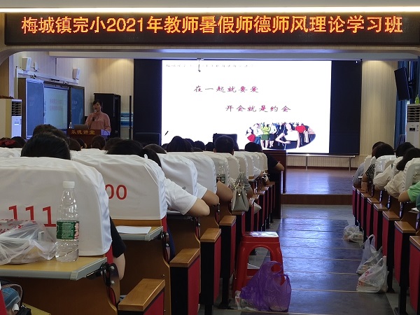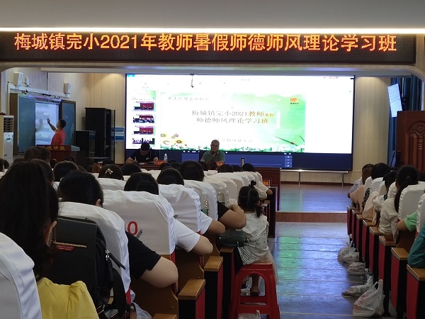 本网讯 8月27日,梅城镇完小召开2021年教师暑假师德师风理论学习班。梅城镇中心学校工会主席彭玖中在学习班上作了重要讲话,潘玖中对梅城镇完小上学年取得的优异成绩进行了肯定和表扬,要求老师们讲政治、听党话、跟党走,对今后工作作了启发性指导,特别是疫情防控和课后服务工作,要不忘初心,以人民为中心,切实办好人民满意的教育。梅城镇完小党支部副书记、工会主席王喜安就师德师风建设和“五项管理”进行学习和工作强调,特别对《中小学教育惩戒规则(试行)》进行详细解读。梅城镇完小新任党支部书记、校长夏国荣带着先进的教育教学理念和“我们一起再努力”的服务思想,就师德师风、教育的发展和教师的成长进行一场别开生面的演讲,给全体教师送上了一份灵魂上的大餐。(通讯员 高永健 姚钢台)