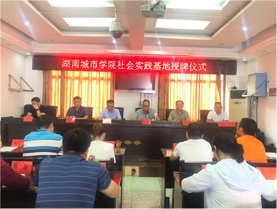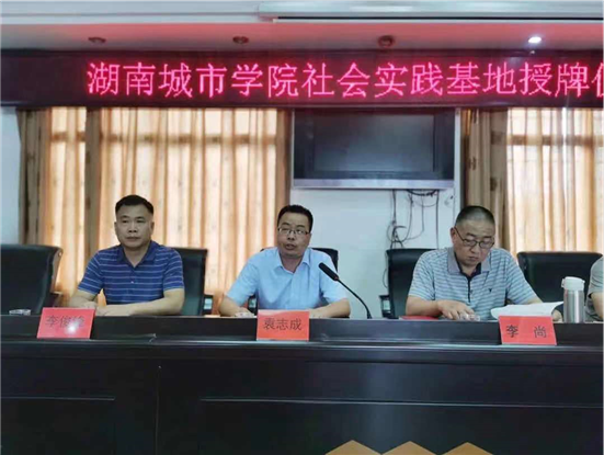 本网讯 7月24日上午11点,湖南城市学院社会实践基地授牌仪式在清塘铺镇人民政府五楼大会议室举行。该仪式由益阳市委组织部驻文丰村振兴驻村工作队队长、第一书记赵远帆主持,这是湖南城市学院至建校以来授予的首家大学生社会实践基地。