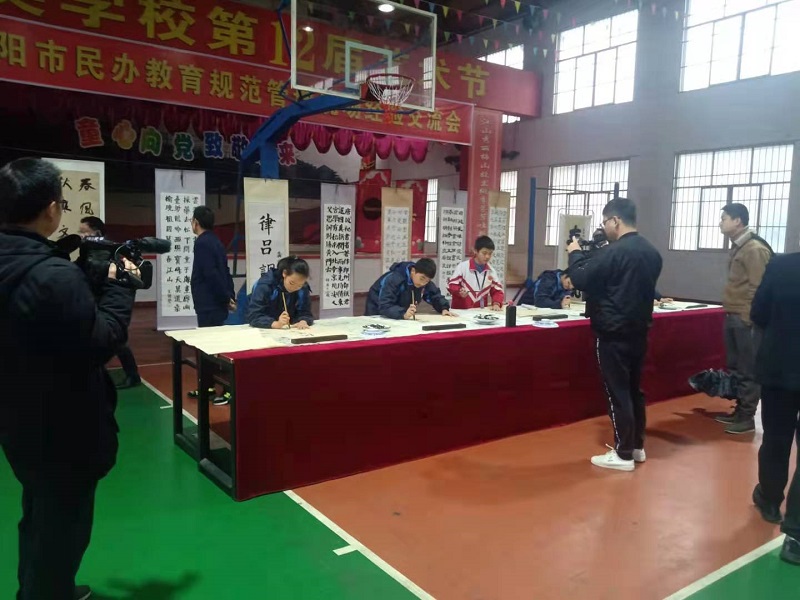 本网讯 日前,江英学校党支部、行政向全校师生发出了“做堂堂正正中国人,写漂漂亮亮中国字”的号召。口号豪迈而激越,全校师生临池染翰,深深沐浴着书法瑰宝的清芬,书法热潮一浪高过一浪。 据悉,该校自2008年8月创办至今,始终把继承传统,弘扬国粹,大力推动书法教育,作为学校特色教育的强力抓手。董事会明确指出,要重点建设“四个一”工程。即“一人一支笔,一天一练习,一周一次专家课,一年一次大比武”。2009年春,江英创立了“益阳市书法家协会书法教育基地”。2012年成为“中国美术学院书法考级定点单位”。先后骋请省书协会员、安化县书法家协会副主席王国千,安化书法教育名师李祈良来江英执教书法。两位名师执教,书法课进入课表,书法老师进入课堂,学校书法教育日新月异。13年来,坚持不懈,持之以恒。书写水平,普遍提升。特长培训,文澜涌起。一批又一批的书法人才崭露头角,在书法艺海里杨帆远航。 传统文化是中华民族之根。文化自信的理念将扎根江英,不断升华。(通讯员 王国千)