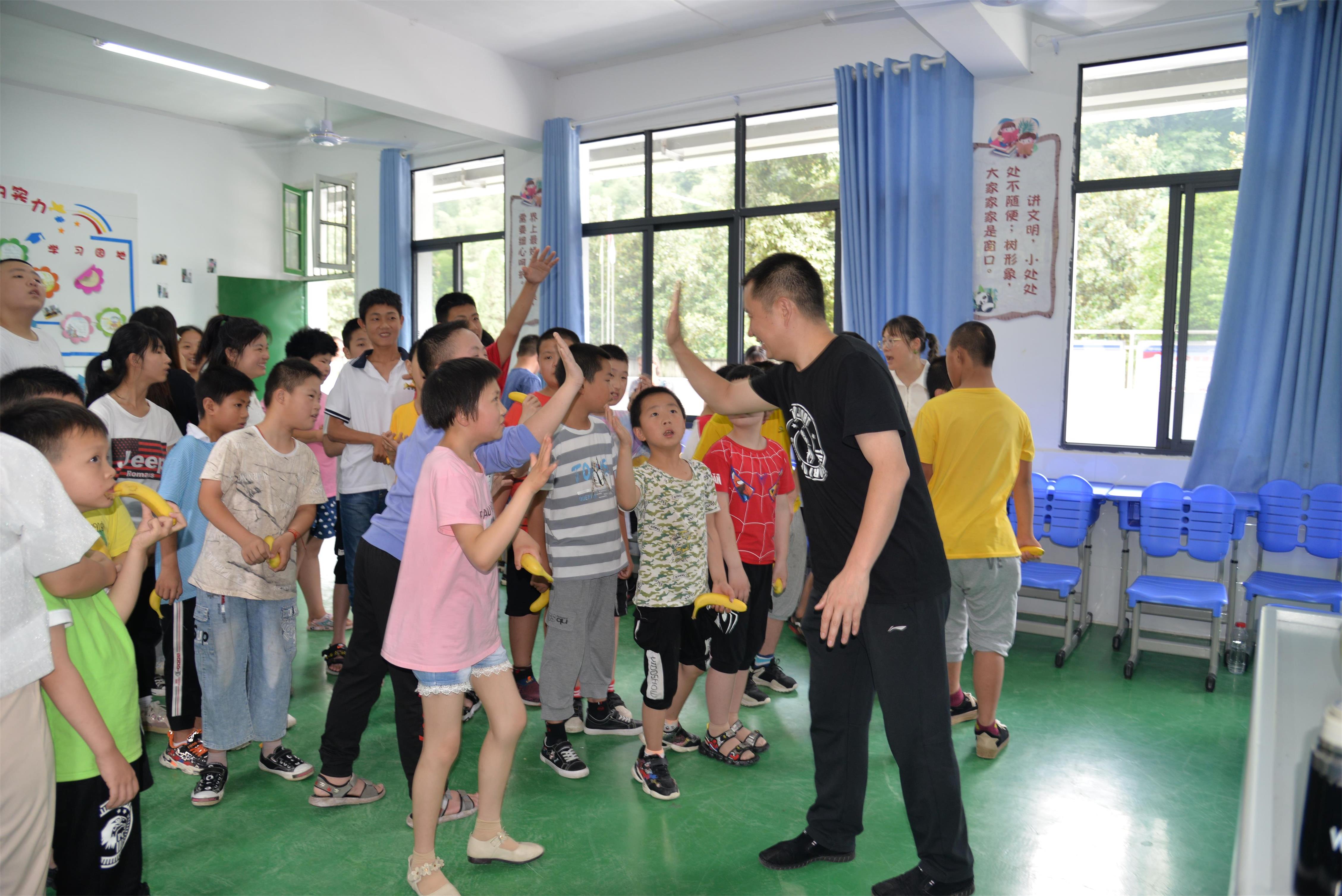 志愿者把绿色西瓜分成若干份,逐一送到孩子们的手里。孩子们边吃志愿者送给他们的西瓜,边说“谢谢”。对于孩子们来说重要的不是礼物,开心的是相聚与分享的快乐!