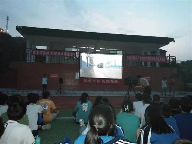 本网讯 6月24日晚,高明乡中学全体师生在田径场观看红色露天电影,以此迎接百年党庆。 为进一步加强师生思想教育,传承红色基因,重温党史,激发爱国爱党情怀,高明乡文化站送影到校,组织师生观看红色电影《上甘岭》《建党伟业》。电影《上甘岭》再现了抗美援朝的英雄壮举和我党我军的英明决策。最可爱的人的英雄精神感染了每一位观众。《建党伟业》再现了毛泽东等老一辈无产阶级革命家从青年时期就自觉担负起救亡图存、奋发图强的历史重任,团结带领英勇的革命志士进行了百折不挠、艰苦卓绝的斗争,用青春与热血谱写出中国共产党最为壮丽的历史篇章。观影后,很多同学感慨:今天的幸福生活来之不易,党的光辉历程激发了自己对党的深切感恩,表示要牢记时代使命,奋发有为,不负青春。 在电影放映的间隙,播映员高爱新同志还播放了防溺水、防毒品、交通安全等安全知识宣传短片,教育大家珍爱生命,保障健康。充分体现了党和政府对青少年的关怀。(通讯员 高飞跃)