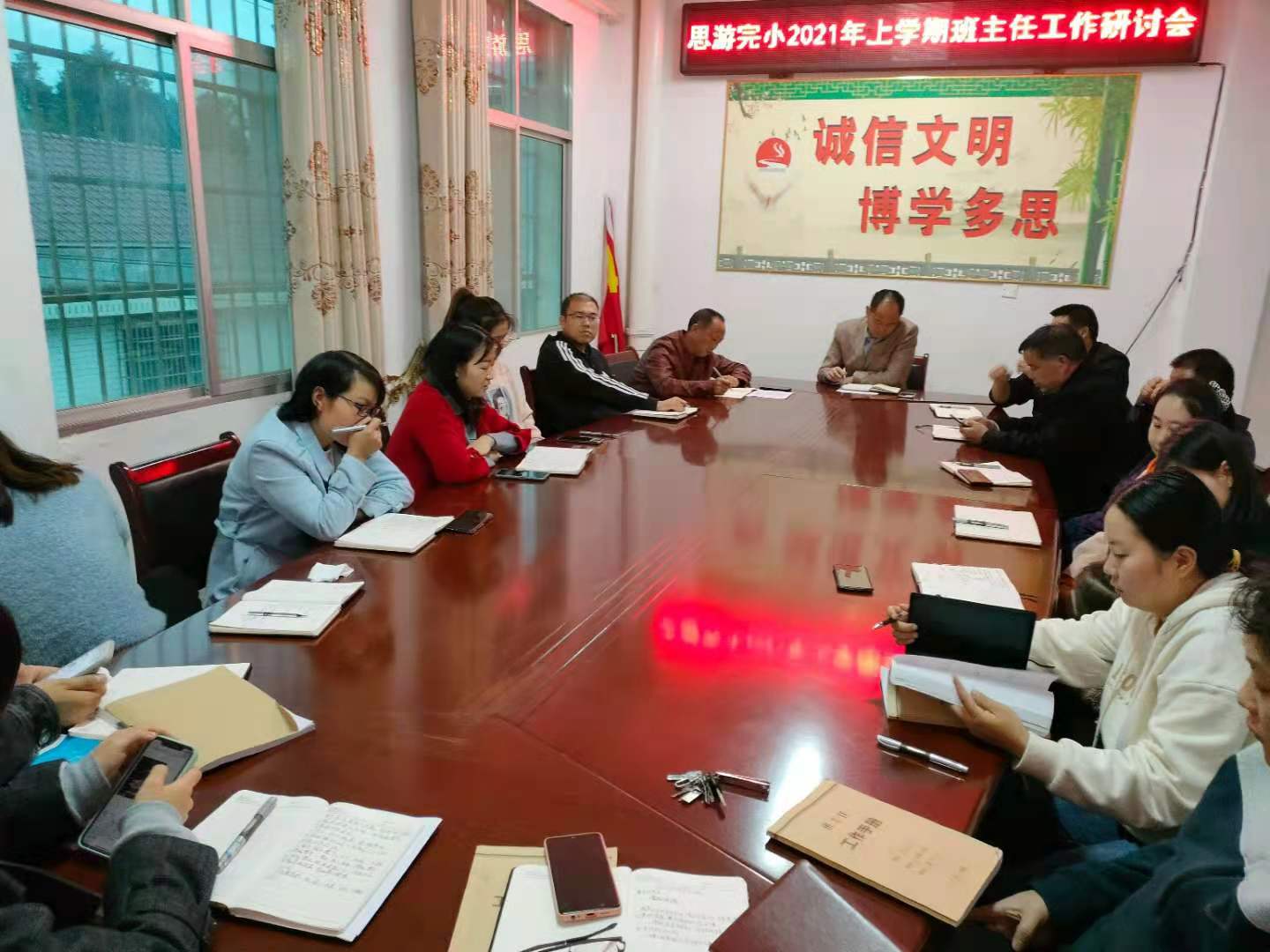 本网讯 6月17日晚,思游完小在教师会议室召开了班主任工作会议,全校十二位班主任及全体行政一同参加了此次会议。 会议分为四个个议程:首先由各班主任老师对自己班级的情况进行简要分析,重点对常规管理进行介绍;然后教导处主任夏胜军对各班级的亮点提出了肯定,并强调要班主任老师加强班级常规教育;随后各行政也纷纷提出了自己的看法并从安全、卫生等各自分管领域方面做出了强调;最后由校长周正才做总结发言,他对班主任老师提出了三点期望:一是教师要有爱与责。二是努力抓常规,促质量。三是多学习,促自我提升。 整个会议围绕“抓常规,促质量”来展开交流,进一步加强了班主任老师的责任感和使命感,也为更好的加强班级管理和开展班级工作奠定了坚实的基础。 |