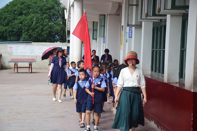本网讯 6月17日上午,乐安镇中心幼儿园大班的小朋友在园长李雪琴的带领下,来到乐安镇完小举行“砥砺十年、奠基未来”幼小衔接活动。 9点,孩子们手牵着手,排着整齐的队伍,走进了小学校园,校园里优美的环境、朗朗的读书声,吸引着同学们的眼球,四处张望;在乐安镇完小吴学敏老师的带领下,小朋友们参观了教学楼、音乐室、阅览室、电脑室,让小朋友进一步感受了小学的生活和氛围。 紧接着,乐安镇完小全体师生进行了隆重而庄严的升旗仪式、大课间活动表演,哥哥姐姐们整齐的入场,笔直的队列,嘹亮的国歌,都为孩子们树立了榜样,都不约而同的竖起了大拇指;小朋友们也精心准备了节目,音乐响起,在老师的带领下,快乐的舞蹈。 加油、加油,呐喊声响彻校园,在该校体育教师刘宗平、李俊的组织下,讲解游戏规则、示范动作要领,带领小朋友们玩起了体育游戏,孩子们都意犹未尽,玩了一次继续排队,乐此不疲。 最后,各班小朋友合影留念,通过此次活动,使幼儿对小学的学习、生活环境有了了解,为孩子顺利过渡为一名小学生打下了坚实的基础。