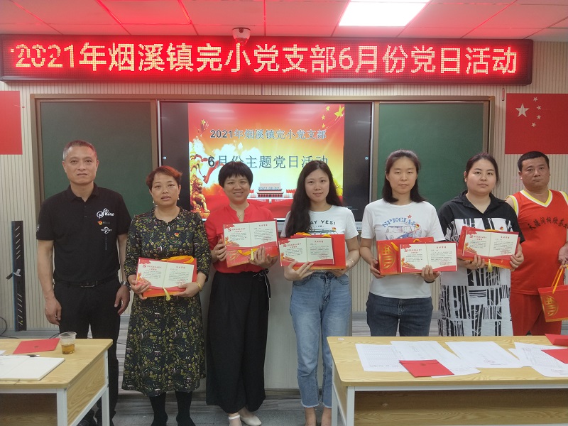 本网讯 “种树者必培其根,种德者必养其心”。为让党员不忘入党初心,强化党员党性意识,进一步增强党组织的向心力、凝聚力,烟溪镇完小党支部于6月2日晚上18:30开展以“同过政治生日,铭记红色初心”为主题的党日活动。全体党员、预备党员、积极分子共庆“政治生日”。 活动中,支部全体党员面对鲜红的党旗,高举右拳,字字铿锵,重温入党誓词。随后,集中观看了两个红色视频《博物馆里的党史:一张特殊的全家福》《打谷场上连开50多天会 翻身农民“耕者有其田”》,从视听中接受党史学习教育,汲取奋进力量。 在“同过政治生日”环节,支部书记刘芬、副书记尹立芳分别向5、6月份过“政治生日”的党员送上精心准备的贺卡及礼物,勉励大家铭记红色初心,永葆政治热情,牢记使命责任。老党员刘仲华说,感谢党给我一个这么庄重的“过政治生日”仪式,心里不仅暖暖的,更是有一种归属感、荣誉感和责任感。我当恪守初心使命,永葆党员革命本色,继续为烟溪教育发挥余热。 本次主题党日活动不仅是对党员过“集体生日”表达祝福,更是希望通过“学史崇德”研讨,不断增强党的意识、党员意识,做到心中有党明大德、心中有民守公德、心中有戒严私德,永葆对党的忠诚之心、对人民的赤子之心。同时提醒党员教师继续坚守入党初心,以史为鉴,承前启后,为烟溪教育贡献出一份力量。(通讯员 黄蕾)