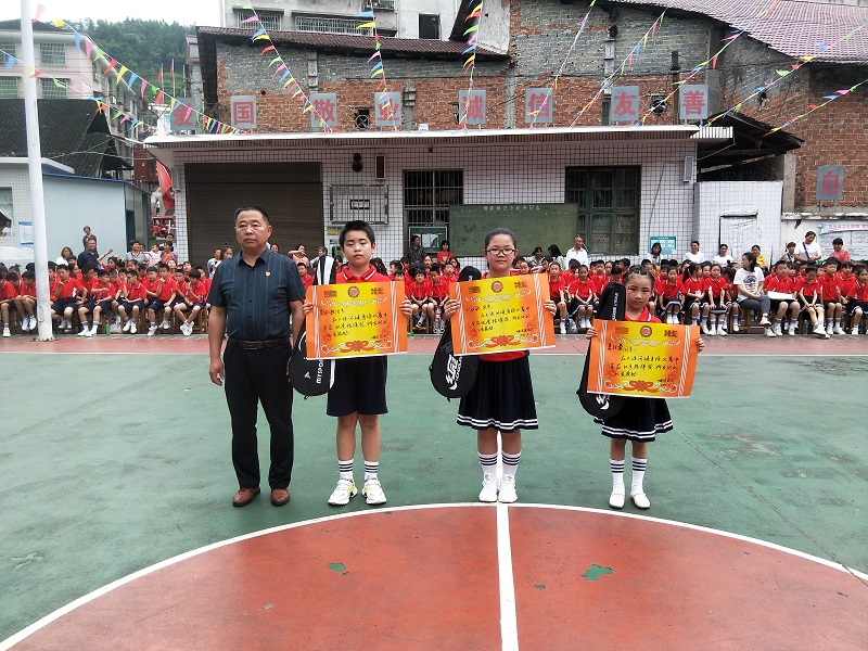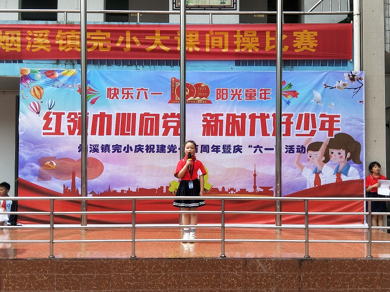 下午13:30,烟溪镇完小在操场举行了课间操比赛。烟溪镇党委委员张辉、烟溪镇中心学校班子成员、关心下一代协会会员、家长朋友以及全校师生近1200人观摩活动。伴随着嘹亮的少年先锋队队歌,学生代表为到场来宾敬献红领巾。随后,校长刘芬致辞,她代表全体师生感谢党委政府及社会各界人士,对少年儿童的关爱及对学校工作的大力支持;张辉为孩子们送上节日的问候和祝福。随着烟溪镇中心学校校长梁新安宣布活动开始,课间操动听的旋律响遍整个校园。比赛过程中,学生们衣着整齐、精神饱满、昂首阔步、斗志昂扬,整齐的步伐、标准的动作、飒爽的英姿、嘹亮的口号,形成校园内一道道亮丽的风景线,赢得在场评委和观众的阵阵掌声。经过近2个小时的激烈角逐,最终99班、102班,109班荣获一等奖,夏钰盈、刘妍颖、刘翎桓3位同学脱颖而出荣获优秀指挥员。