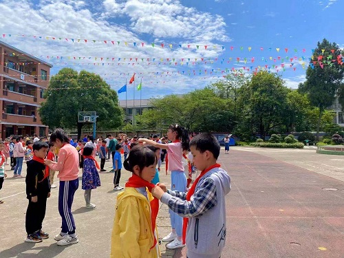 在光荣的队旗下,在星星火炬的鉴证下,队员们迈开了人生成长的第一步。