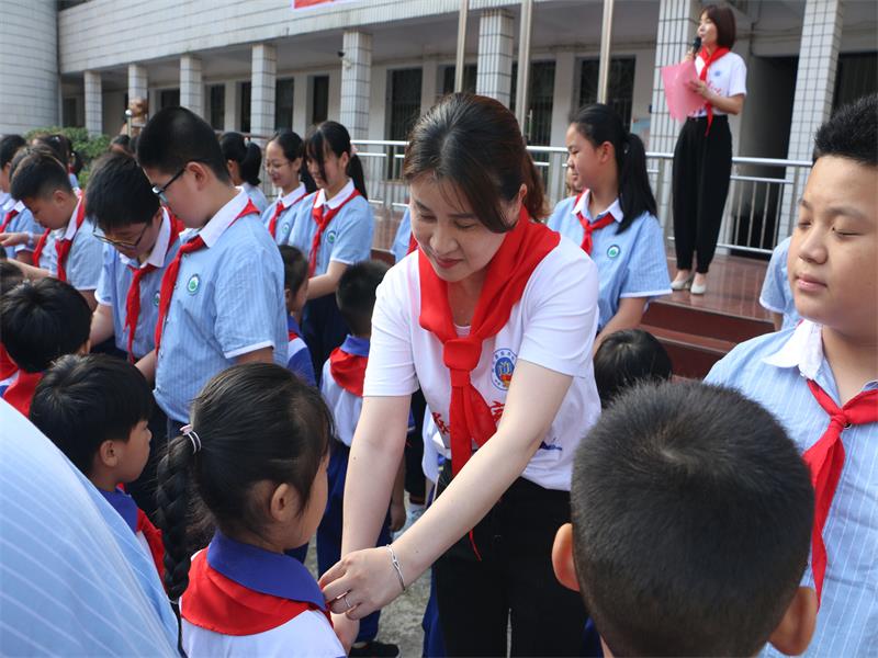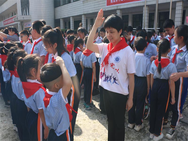 本网讯 5月31日上午8点,东坪完小少先队大队开展了“建党百年迎华诞 争做时代好少年”2021“红领巾心向党”新队员入队仪式。本次活动共有一年级8个少先队中队和329名新队员加入少先队组织。 在隆重的入队仪式上,大队辅导员赵思宣读了新中队和新队员名单,学校行政和五年级各中队的优秀学生代表为新队员佩戴红领巾,为新成立的中队授予中队旗。在大队干部莫彭涵的带领下,小小少先队员们面向队旗庄严宣誓:我是中国少年先锋队队员,我热爱中国共产党,热爱祖国,热爱人民,好好学习,好好锻炼,时刻准备着为共产主义事业贡献力量!315中队庞皓予同学作为新队员代表发言,表示以后将更加勤奋学习、勇于进取、无私奉献,争做优秀少先队员。 仪式上,该校校长陈秀丽和副校长罗建刚为8个新聘任的中队辅导员颁发聘任证书。320中队李鹄老师作为辅导员代表讲话,表达了对新队员的祝福和期望。 随后,陈秀丽发表贺词,对全体少先队员提出了新的希望和要求,勉励全体队员听党话、跟党走,争做新时代好少年。最后,入队仪式在队员们庄严的呼号声中圆满结束。 新中队的加入,壮大了该校少先队组织的力量,展示了少先队组织与时俱进的时代风貌,成为了少先队工作一道亮丽的风景。相信在所有辅导员老师的共同努力下,该校少先队工作一定会迈向崭新的台阶。(通讯员 赵思)