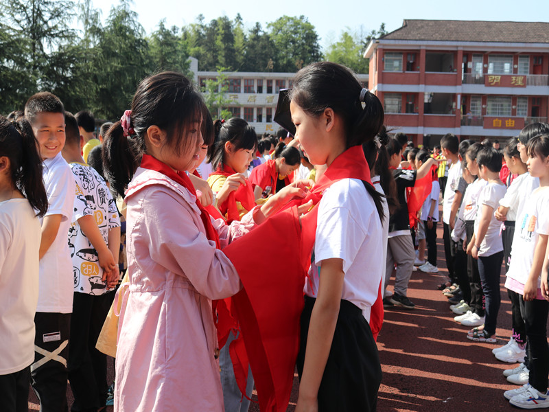 本网讯 5月31日上午,羊角塘镇文昌阁学校举行了一场庄严而又隆重的新队员入队仪式。这次活动旨在引导队员们继承和弘扬少先队的光荣传统,增强少先队员的光荣感、自豪感,展示新时代该校少先队员乐观、积极向上的精神风貌。 此次入队仪式共有256名新队员光荣加入少先队。入队仪式按照出旗、唱《中国少年先锋队队歌》、校领导讲话、宣读新队员名单、老队员为新队员授红领巾、大队辅导员带领新队员宣誓、新队员代表发言、大队辅导员讲话、呼号、退旗、入队仪式结束顺序依次进行。256名新队员响亮的宣誓声在操场上空久久回荡。 庄严的入队仪式使全体少先队员受到了深深的教育,队员们在火红的旗帜下受到了心灵的洗礼。此次活动的开展,不仅为少先队组织增添了新鲜血液,而且让队员们再次接受了组织教育,增强了少先队员的光荣感和责任感。(通讯员 贺彪)
