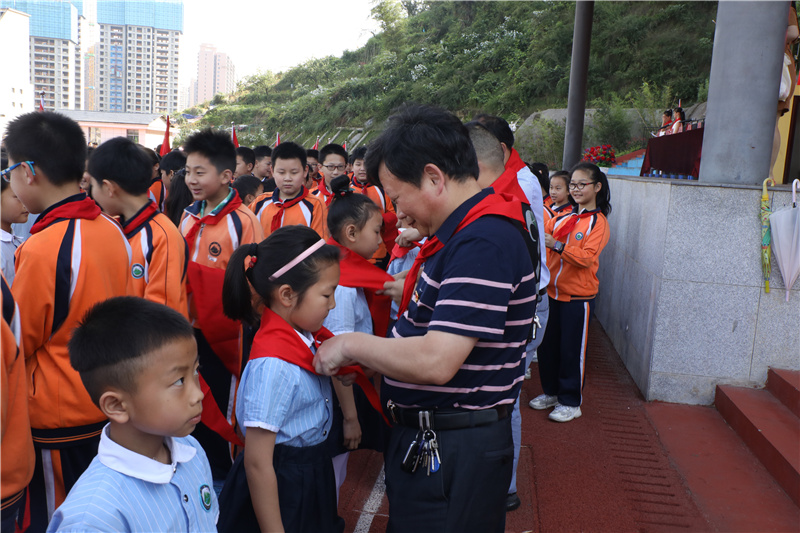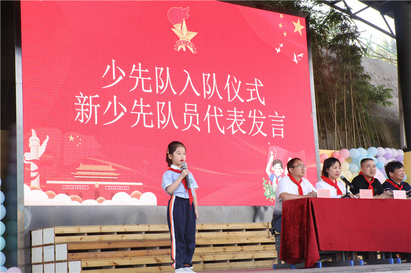 本网讯 天气晴朗,阳光明媚,芙蓉园里一批批优秀的少年儿童们整装待发。5月31日上午,第一芙蓉学校组织开展新少先队员入队仪式。此次共有192名优秀儿童加入了中国少年先锋队。 活动开始,新老队员们齐唱中国少年先锋队队歌;学校副校长蒋国庆宣读了新入队名单;党员、团员教师及老队员们为新队员们系上了鲜红的红领巾;少先队辅导员陈晨对新入队的队员们表示祝贺,并提出了殷切希望。整个活动过程鼓号声声震天,入队仪式庄重严肃,新老队员们激情澎湃,充分展示了芙蓉学校的优良作风。 新队员代表潘思呈表示:能够加入中国先锋队我感到无比的骄傲与自豪,一定下定决心,好好学习,天天向上!(通讯员:蒋国庆 李韦奇)