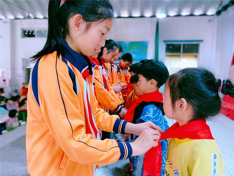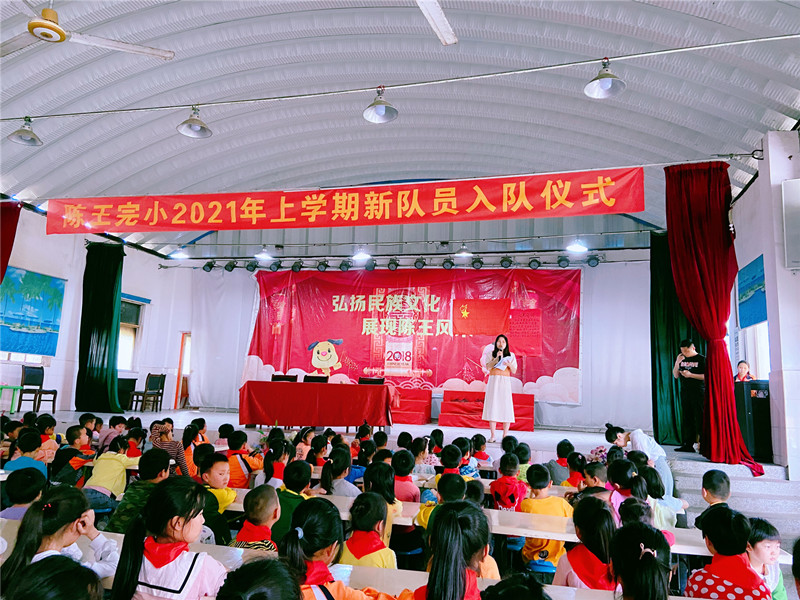 本网讯 5月28日上午,江南镇陈王完小礼堂内,在充满朝气和活力的《中国少年先锋队队歌》的歌声中,举行2020年上学期新队员入队仪式。 各中队新少先队员们排着整齐的队伍,在同学们的祝福下,踏着坚定的步伐有序登上舞台。接着,老队员们郑重地为新队员们系上鲜艳的红领巾,新队员个个神采飞扬,与老队员互敬队礼。礼毕之后, 在庄严的队旗下,全体新队员在大队辅导员郑逸雯老师的带领下,高举右手,庄严宣誓。最后,对优秀队员进行表彰,通过本次仪式,不仅壮大了少先队员的队伍,也让少先队员们感受到所肩负的光荣使命和先进力量的光荣与自豪。(通讯员 王沪)
