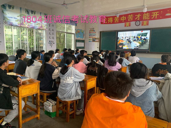在诚信考试主题班会中,班主任还从非诚信考试的危害、诚信考试的做法、身边发生的案例等方面对学生进行诚信教育。同学们纷纷表示,一定要努力复习,考出诚信、考出成绩。