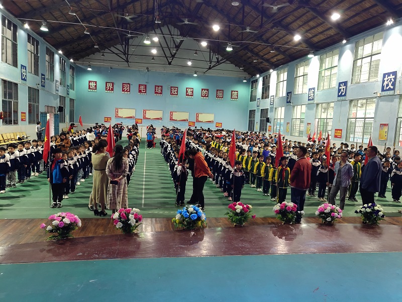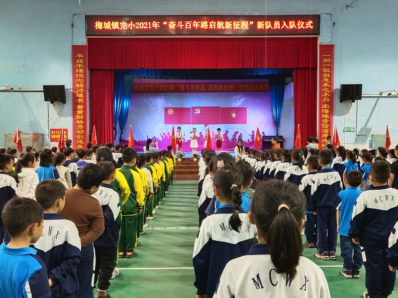 本网讯 5月26日下午,梅城镇完小在九红羽校举行“奋斗百年路 启航新征程”新队员入队仪式活动。在鲜艳的五星红旗下,队旗迎风飘扬,红领巾就像熊熊火焰在跃动,新队员由中队辅导员带领下进入九红羽校, 在《中国少年先锋队队歌》的旋律声中,老队员给新队员授戴好鲜艳的红领巾。220名同学在老师和同学们的见证下成为一名光荣的少先队员,他们个个精神饱满、信心满怀,从他们的稚嫩的脸上看到了对共产主义的坚定信心和祖国未来的希望。周梓宸同学代表新队员表达了加入少先队的骄傲与自豪。副校长田幸弘代表全体师生表达了对新队员的祝福和全体少先队员的殷切期望,倡导同学们从小就有坚定的共产主义信仰,认真学习,不畏险阻,为建设新中国贡献力量。 入队是共产主义理想的启航,是一次自我挑战。通过这次活动,增强了同学们的荣誉感、责任感和自豪感,让星星火炬点燃孩子们心中的那盏明灯,怀着火热的心努力学习和参与到建设祖国的大潮之中。(通讯员: 姚钢台 高永健 )