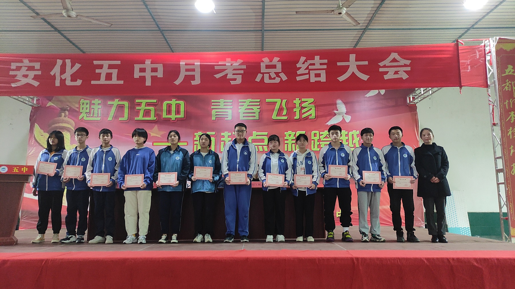 副校长刘飞舞在会上对学生表达了殷切的希望。他指出:成绩的进步空间很大,同学们要把握好自己的弱势科目,规划好时间,不打无准备的仗。接着,刘莎、刘健源、刘飞舞分别给高一、高二、高三优秀学生进行了颁奖。