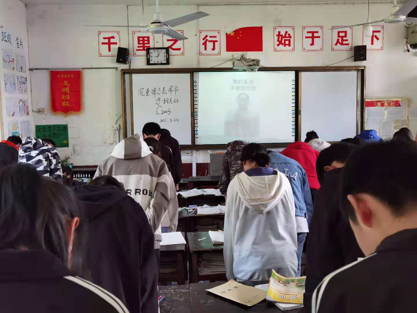 本网讯 5月24日上午8点10分,冷市镇中学以班级为单位举行了“悼念袁隆平院士”主题活动。