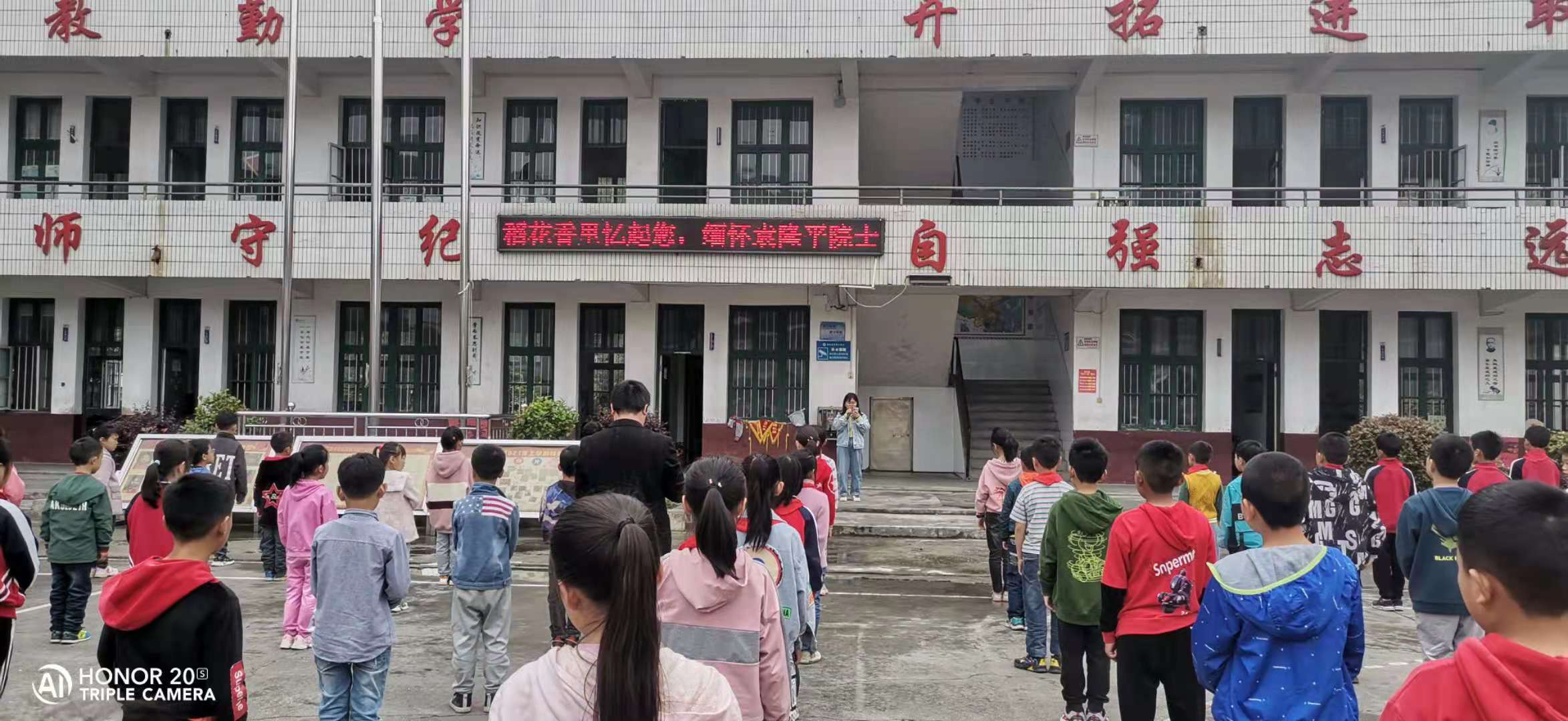本网讯 高明乡完小于5月24日星期一,全校师生齐聚在操场,举行“稻花香里忆起您,缅怀袁隆平院士”为主题的升旗仪式。 出旗、升旗之后,在彭晓勇校长的组织下,全校师生默哀三分钟,大家肃然而立、神情凝重、满含悲痛,以此来纪念袁隆平院士。 接着,大队辅导员何素芝老师进行了国旗下讲话,她简单地回顾了袁隆平院士光辉灿烂的一生和为人类作出的巨大贡献,号召全体学生学习袁爷爷忧国忧民的爱国精神、锲而不舍的钻研精神、不计名利的奉献精神、勇攀高峰的创新精神,现在认真学习,将来报效祖国、造福人类! 然后,教师代表龙志荣老师发言,龙志荣老师眼含泪水,悲痛之情溢于言表:“袁隆平院士仙逝的噩耗传来,全体国人内心无比悲痛。斯人已逝,精神永存。我们将秉承袁老的遗训,在学校培养出更多有理想、有抱负的优秀学子,以告慰袁老在天之灵。” 最后,学生代表夏熠轩同学发言。夏熠轩同学动情地说:“袁爷爷是一个温和慈祥的人,他那种勇于探知和不肯放弃的精神,对我的学习产生了很大的影响。今后我要像袁爷爷一样,当一名科学家,为全人类造福!” 袁爷爷,您一路走好!我们将秉承您的遗志,为实现中华民族伟大复兴的远大理想而不断努力!