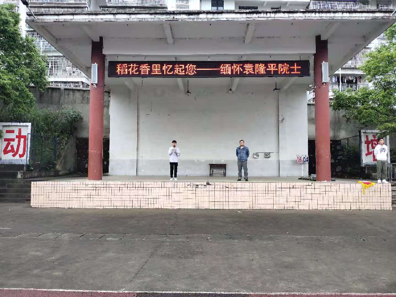 本网讯 5月24日早上7点,平口镇中学举行升旗仪式暨缅怀袁隆平院士活动,由团委书记史搏成主讲。 在悲壮激昂的国歌声中,浸染了革命鲜血的五星红旗冉冉升起,拉开了活动的序幕。随后,史搏成给全校师生介绍了一位特殊的农民——袁隆平院士,杂交水稻之父、中国工程院院士、“共和国勋章”获得者,荣誉等身的当代神农,并组织师生共同缅怀。语重心长地讲述了袁爷爷两个夙愿:禾下乘凉、覆盖全球,抑扬顿挫数说了袁爷爷的科技创举,带领科研团队不断刷新亩产产量,700、800、900、1000、1100,据2020的最新数据显示,杂交三代两季总和亩产量1500公斤,铿锵有力地给出了粮食安全问题的中国答案:“高科技养活中国人,中国人的饭碗一定要端在自己手里!” 史搏成要求全体学生铭记袁爷爷付出,坚决不浪费一粒粮食,以袁爷爷为榜样,不断进取、勇于探索,从小学先锋,长大做先锋,努力学习科学文化知识,为实现“两个一百年”奋斗目标、实现中华民族伟大复兴而不懈努力。(通讯员 彭忠德)
