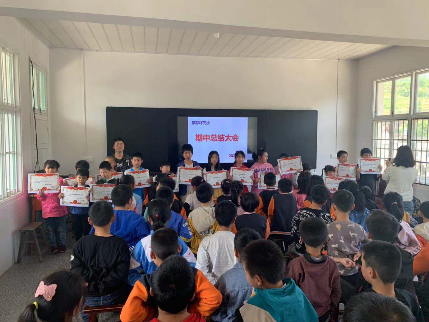 本网讯 5月19日上午,借着廖家太平两校教育提质共同体的东风,廖家完小全体师生在二楼会议室召开了期中总结表彰大会。 本次会议与以往的期中总结会有所不同,特别有请了纪律最好的五年级两名班委发言,他们在电脑课老师的帮助下,自己制作了课件,通过思维导图的形式阐述了他们协同老师管理班级的一些办法,新颖的演讲形式赢得了全体师生的关注,同学们听得格外认真。教务主任黄勇也另辟蹊径,从“四有”好老师联系到学生,通过思维导图的形式向同学们阐述了如何做一名好学生,对理想信念,道德情操,扎实学识,仁爱之心,做了深度剖析,既是对老师的要求,又表达了学校对学生们的期望。随后,校长刘志坚宣读了获奖学生名单,为获奖学生颁发奖状和奖品,并代表学校向获奖学生表示祝贺;同时,全面总结了半学期来全校师生所取得的成绩,也指出了问题与不足,并就下半学期工作做了部署,向同学们提出了新的希望和要求,鼓励大家努力营造良好的教学氛围,构建团结、文明、和谐、进步的阳光校园。 |