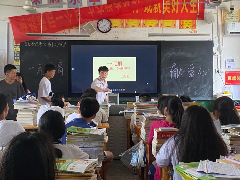 “我曾经接受过很多人的帮助,我想在我的能力范围内也奉献出自己的力量。”高一班级的一位学生平淡地说道。教室里学生们的掌声雷动,响彻校园。作为一个留守儿童,他始终将“人人为我,我为人人”的爱心精神藏于心间,富有感恩精神。