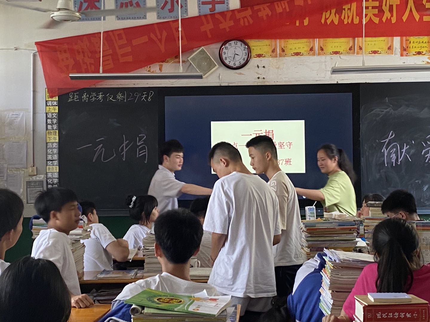 “我已捐款,请注意查收”。党支部书记、校长龚加宜虽远在长沙参加全县党务干部高研班培训,但是仍然密切关注学校活动,踊跃参与,为师生们做出了很好的表率。今年是龚加宜校长来五中的第三年。三年来,五中发生了翻天覆地的变化,他是学生口中的好校长,也是学生心目中的“牛人”。为改善办学条件,他东奔西跑,不顾自己的身体有恙,将爱校爱生熔铸进自己的使命。在龚校长的带领下,老师们主动献出自己的爱心,营造了爱心互助的氛围,师德师风在爱心活动中体现得淋漓尽致。