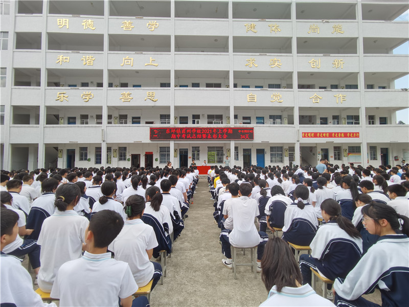 本网讯 5月14日下午,东坪镇酉州学校隆重举行期中考试总结暨表彰大会,初中部全体师生参加了会议。 大会由酉州学校副校长李毅辉主持。会议首先对在2021年上学期期中考试中取得优异成绩的班级与个人进行颁奖。颁奖完毕,各年级进步班级代表对本班期中考试情况进行总结,并提出后阶段班级学习目标和措施。接着,各年级的“学霸”作了学习经验介绍,各班优秀的学习小组上台进行小组建设经验介绍与展示。 教务处主任刘志云对全校期中考试的情况作了全面的总结,特别对表现优秀、进步明显的同学给予了肯分的表扬和肯定,他激励全体同学、特别是毕业班的同学在最后的一个月中,充满信心、继续努力,争取在中考中取得更加优异的成绩。副校长刘海峰对上半学期学校政教工作进行了总结。他指出:铁的纪律与务实的行动是好的校风、学风的保证,是同学们能够安心学习的前提条件,希望在后一阶段中,同学们能全身心投入到学习中去。最后,老师代表刘齐鸣进行了热情洋溢的讲话,她激励孩子们要努力成长,成长为一个有爱心、对社会负责任的人。接地气的话语直击人的心灵,赢得了师生们阵阵热烈的掌声。
