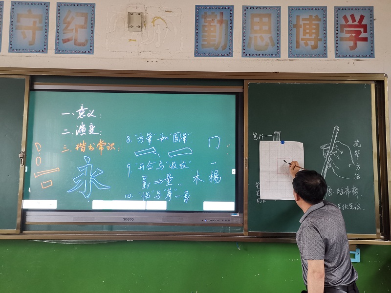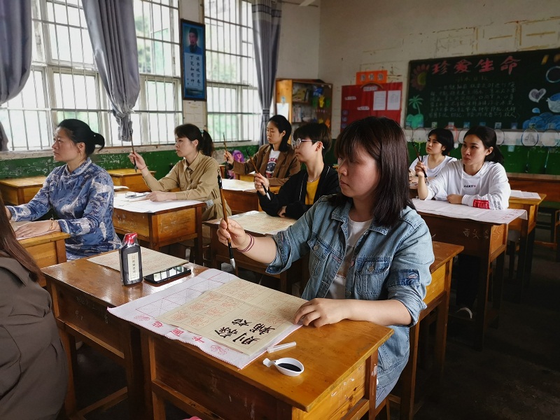 本网讯 开班了!开班了!烟溪镇完小教师书法班于5月11日正式开班。学校20名青年教师怀着“闻道有先后,术业有专攻”之志,在老师曾善龙的指导下,开启了书法学习的大门。曾善龙一直任教于烟溪镇完小,长期担任美术教师,拥有“诗书气自华”“下笔如有神”之才艺。立品之人,笔墨外自有一种正大光明之概,这是他对青年教师的谆谆教诲。他说:“作为教师,我们要练一手好字,传一代文明;写气质人生,扬祖国精华。”
