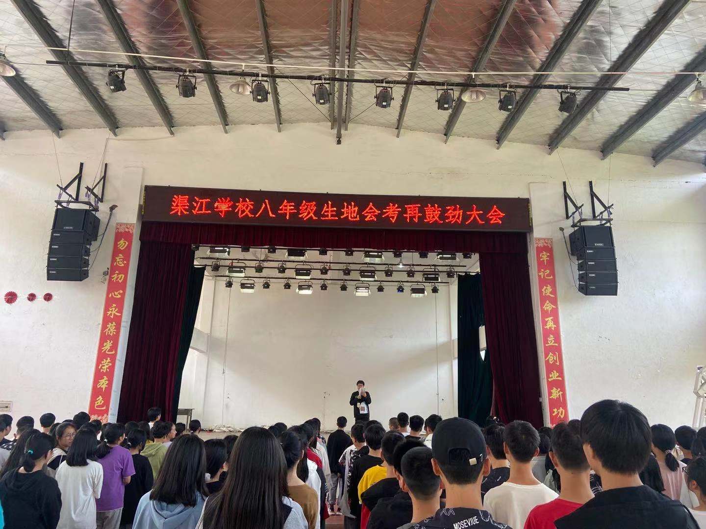 本网讯 5月6日下午召开了八九年级中考鼓劲誓师大会,大会分为四个会场,为不同层级的学生鼓劲、指明方向。 本次活动由教导处组织,九年级教师及班主任协助。为了让活动的效果更好,老师们做了充足的准备:为八九年级学生定制“渠江有我,中考必胜”的手环、购买旺仔牛奶、改写歌词创编《渠江少年》。胡加田校长亲自拟定活动横幅——渠水流长吾等师长九载育桃李,江山广阔我辈学子六月夺头魁。 九年级分为三个会场。九年级一组由夏新建、陈彬、李媛三位老师负责,他们邀请每位学生上台喊出自己的目标,并举起牛奶相互鼓励;九年级二组由刘付文、张宏博、林丽玲老师负责,大家观看了刘媛媛《寒门贵子》的演讲,三位老师为同学们明确了接下来努力的方向和方法; 九年级三组由胡加田、李红淑、王洪日三位老师负责,同学们勇敢地接过话筒,大声说出自己的梦想。 八年级全体同学在吴弯、杨清彦、姜美华三位老师的组织下,走上舞台激情演讲,在横幅上郑重签上自己的名字,放声合唱《渠江少年》,活动现场高潮迭起,正能量爆棚! 分层动员结束后,八九年级学生聚集在教学楼前坪,七年级的同学在二楼为他们摇旗助威,高喊:“祝学长学姐,金榜题名,梦想成真!”随后,八九年级全体同学在周昕怡、夏雨鑫同学的带领下庄严宣誓。 此次活动激励性强,活动效果明显。2021年中考学子们,一定会用行动和优异的成绩证明自己,再创渠江学校中考新辉煌!
