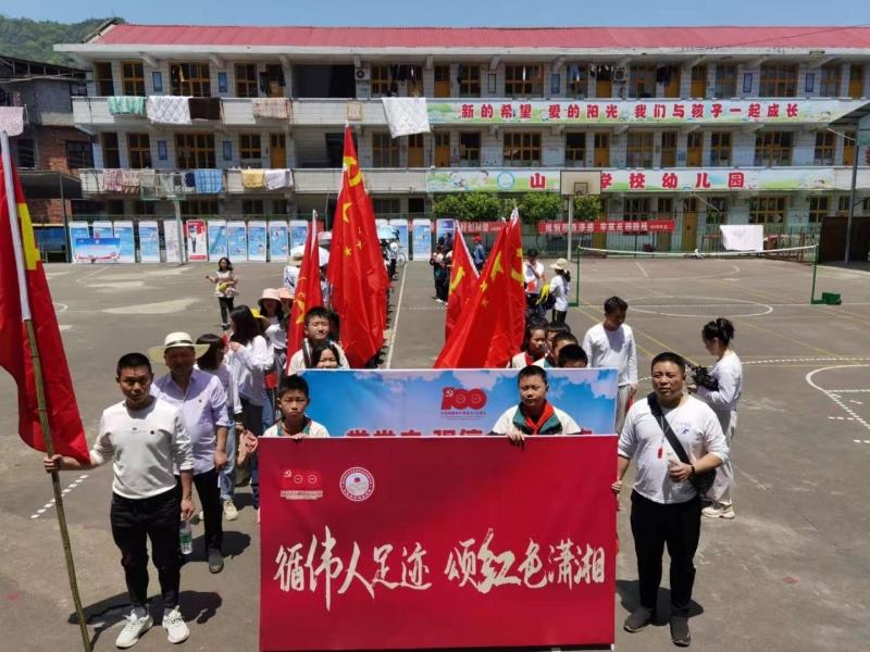 在党旗的带领下,师生们意气风发地走出校园,党旗飘飘,步伐一致。到达目的地后,师生们井然有序的参观了红色文化主题馆,了解到毛泽东同志先后两次来到安化,感受到了伟大领袖毛主席的爱国情怀及奉献精神。