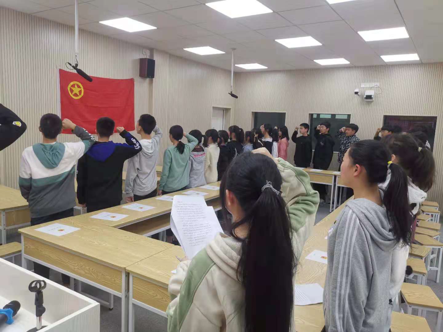 本网讯 4月28日,冷市镇中学于云录播室举行以“青春向党 奋斗强国”为主题的新团员入团仪式。学校政教处主任王忠、校团委书记周易等参加宣誓仪式。 入团仪式在庄严的国歌声中拉开序幕,主持人说明入团仪式的意义,周老师为新团员颁发团员证和团徽。随后在周老师的带领下,新团员们面对鲜艳的团旗高举右拳,庄严宣誓,嘹亮而坚定的宣誓声久久回荡。 王忠寄语新入团的同学。他向新团员表示祝贺并叮嘱他们:在以后的日子里用实际行动捍卫团旗的尊严,珍惜青春年华,锐意进取,不骄不躁,增强自尊,自信自强,树立正确的理想、信念,充分发挥团员的模范带头作用,承担起团员的责任与使命...... 简短、庄重、热烈的宣誓仪式,使同学经历了一次心灵的洗礼,一次严肃而庄重的教育。大家纷纷表示,在今后的学习和生活中,一定会团结勤奋,锐意进取,以实际行动展示共青团员的先进性,将来更好地报效祖国。(通讯员 周易 王忠) |