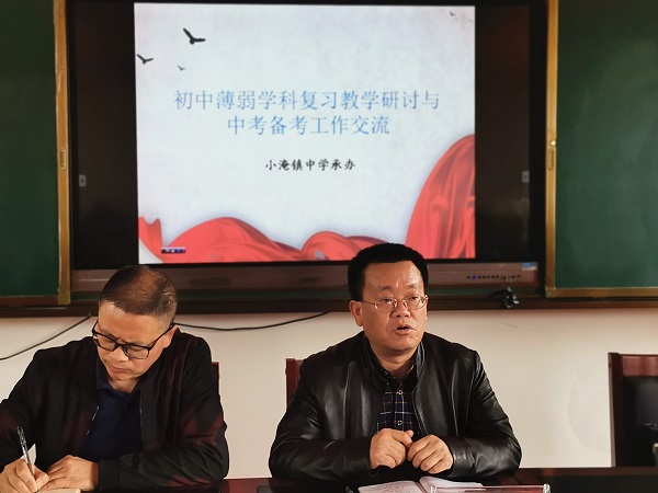 本网讯 4月22日,安化县教育局副局长廖双初带队一行七人组织江南镇中学、洞市学校、大桥学校、敷溪学校、小淹镇中学五所学校在小淹镇中学开展语文、数学、地理毕业学科的复习研讨活动,三镇中心校副校长,五所学校相关学科老师以及小淹镇中心学校领导参与此次活动。 上午第二、三节课分别听了六堂课,六间教室座无虚席,更有老师站着旁听也非常认真地做好听课记录。六个班级的学生在老师的带领下也积极配合,高效完成教学任务。第四节课三科教师分别在不同地方进行评课交流,发展中心相关学科教研员对授课教师高度评价并指出改进意见,廖双初全程参与听课和评课活动,同时对授课教师给予了高度评价。 下午一点,全体参会人员齐聚四楼会议室进行中考备考交流。会议第一项廖双初强调:各校要做好教师思想工作,高度重视中考备考;抓好后段备考工作的落实,狠抓薄弱学科的指导。并对后期薄弱学科研讨工作作出了安排。会议第二项由五所学校的教导主任对各校前段时间的备考工作做详细汇报,并提出后期备考措施。最后县基教股副股长、小淹镇中学蹲点领导黄志红做了题为《科学备考,调查策略,措施落地》的报告,重点强调开展励志教育,落实立德树人,重点关注五类人群;质量监测求精细,措施落地看成效;课堂效益要提升,看转化率和学习提升。 会后,全体老师表示将齐心协力备战中考,创造奇迹,争取摘掉薄弱学校的帽子。(通讯员 彭小义)