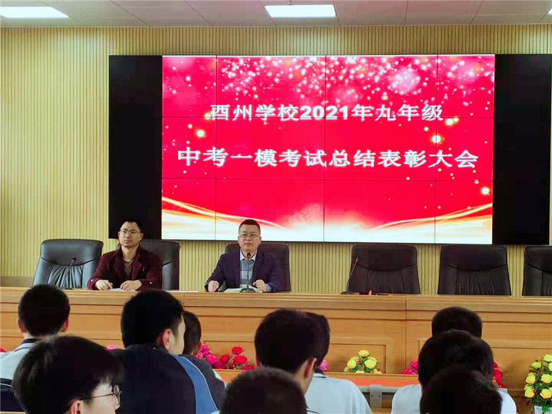 本网讯 4月22日上午,东坪镇酉州学校在科教楼五楼多功能厅召开第一次毕业科目模拟考试总结表彰大会。校长王飞、副校长李毅辉、教务处主任刘志云、政教处主任陈祝丰及八、九年级各班班主任、任课老师,参加了大会。 大会由李毅辉主持。他首先宣读了第一次模拟考试获奖学生、班级的名单。王飞为获奖学生及班级颁奖。各班代表上台进行考试总结,分析班级情况,明确下阶段学习目标,各班重温誓词,坚定信心。刘志云进行了考试情况分析,指出了同学们在考试中存在的一些问题,鼓励同学们继续努力。 最后,王飞对次大会进行了总结。他向师生们提出了要求与期望:一是要每天重温誓词,勿忘初心;二是要珍惜时间,合理安排学习时间;三是要团结,同学之间互帮互助,互相鼓励,遇到难题,相互研讨,分享学习经验;四是教师们要认真研究课标及近几年的中考试卷,了解考试动态,把握命题方向;五是要理论联系实际,将所学知识联系实际生活,运用到生活中去,争取在2021年中考中取得更大的胜利。(通讯员:刘倩 杨志红)