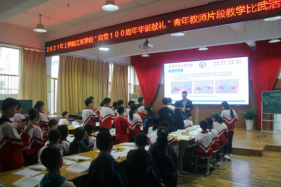 本网讯 4月22日,江英学校中学部教科室组织开展“向建党100周年献礼”暨“青蓝携手,成就你我”青年教师片段教学比武活动。11位青年教师在多功能报告厅展开激烈角逐,学校督学及部分行政担任本次活动评委。 上午8点,学校副校长兼中学部校长姚喜临为本次活动致开幕辞,激励每一位参赛选手,珍惜平台,把握机遇,享受竞技舞台,展示最美风采。 本次教学比武,有六个学科组的教师代表,七八年级中的11个班级的学生参与现场教学,中学部所有教师参与听评课。从数学组姜广斌老师第一节课拉开活动序幕,到体育组谌劼莎老师第六节课在热烈的掌声中走下比赛舞台,整个活动历时一整天。每位老师通过精心的赛前磨课,认真的赛中授课,每一堂课均体现了学生为主体的人本教学理念。尤其是英语组、语文组在教学情景的创设,教学氛围的营造方面花了大工夫,极大地激发了学生学习的积极性。数学组和文综组的老师教学语言简明、生动、有启发性和感染力;体育组老师合力打磨的室内理论课,揭开了体育理论课堂片段教学的面纱,令人耳目一新。 台上的二十分钟,转瞬即逝;台下的反复打磨,却是整个学科组老师共同成长的良好契机。该校教学比武已成常态化,促进着一批又一批青年教师在名师之路上砥砺前行!(通讯员 蒋海波)