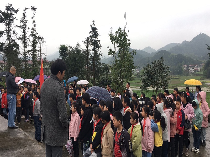 本网讯 4月1日中午,天气仍是灰蒙蒙地下着小雨,长乐完小全体少先队员在李跃进校长的带领下,带着无比敬畏的心情来到了革命烈士李不膺同志的墓地,对李不膺同志进行祭奠。 李不膺烈士是湖南省安化县长乐乡乐园村人,16岁考取安化县立甲种师范学校,在1925年就参加了革命,1926年就加入了中国共产党。后跟随毛主席进行了多次轰轰烈烈的革命活动。在1928年2月9日,李不膺惨遭敌人毒手,时年27岁。 进行完李不膺烈士的生平事迹介绍,将这种悲壮的情绪渲染给在场的每一个学生,脸上都漏出对李不膺烈士的崇高敬意,也进一步让全体学生了解到今天幸福的生活的来之不易,更加珍惜现在的生活。 在此次祭奠活动中,少先队辅导员夏颖老师进行了活动发言,给予了全体少先队员的殷殷期望,随后少先队员学生代表带领全体少先队员进行宣誓活动,立志好好学习,学成报效祖国。