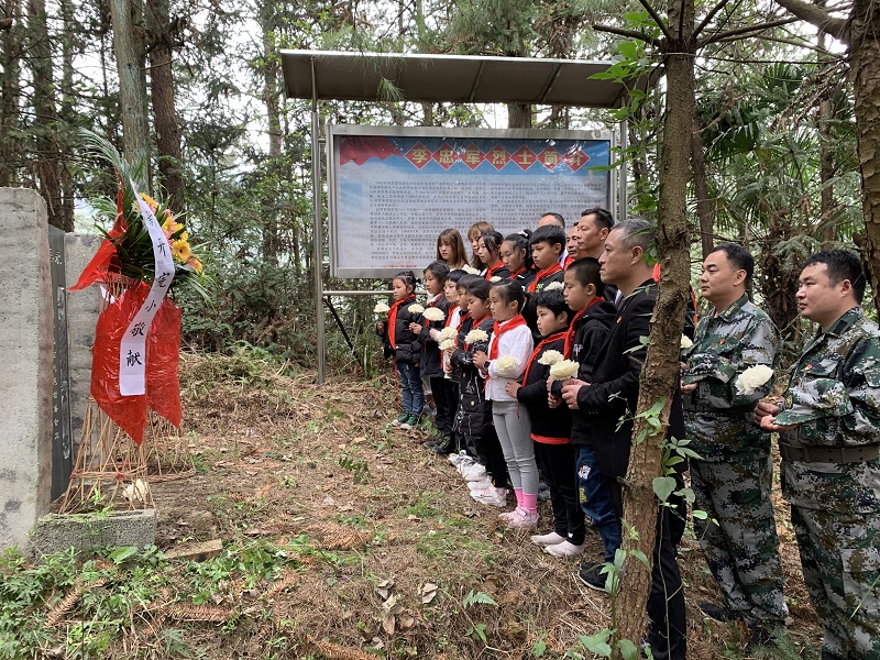 本网讯 “我们要学党史,感党恩,听党话,跟党走,为实现中华民族伟大复兴的中国梦而努力奋斗!”……3月30日下午,烟溪镇新云马村李忠军烈士墓前,烟溪镇新开完小党员教师代表、少先队员代表和烟溪镇退役军人事务部、社工队干职工代表、新云马村志愿者代表20余人铿锵有力的誓言响彻云霄。 青松静立,一派庄严肃穆。全体人员默哀、三鞠躬,敬献花篮和小白花,向烈士表达崇敬之心、致敬之意、感念之情、传承之志。 “没有先烈们抛头颅、洒热血,赴汤蹈火,舍生取义,怎会有我们今天安定祥和的美好生活?”“准备着,为共产主义事业而奋斗。”“时刻准备着!”……志愿者陆钦卿向少先队员讲述先烈的丰功伟绩,大队辅导员胡思雨带领全体队员呼号,学习先烈的革命信仰,让红色文化植根于心,外化于行。 “革命先烈真是了不起的英雄,我一定要继承革命遗志,好好学习,长大以后报效祖国!”活动结束,少先队员刘畅抚摩胸前鲜艳的红领巾,心潮澎湃。(通讯员