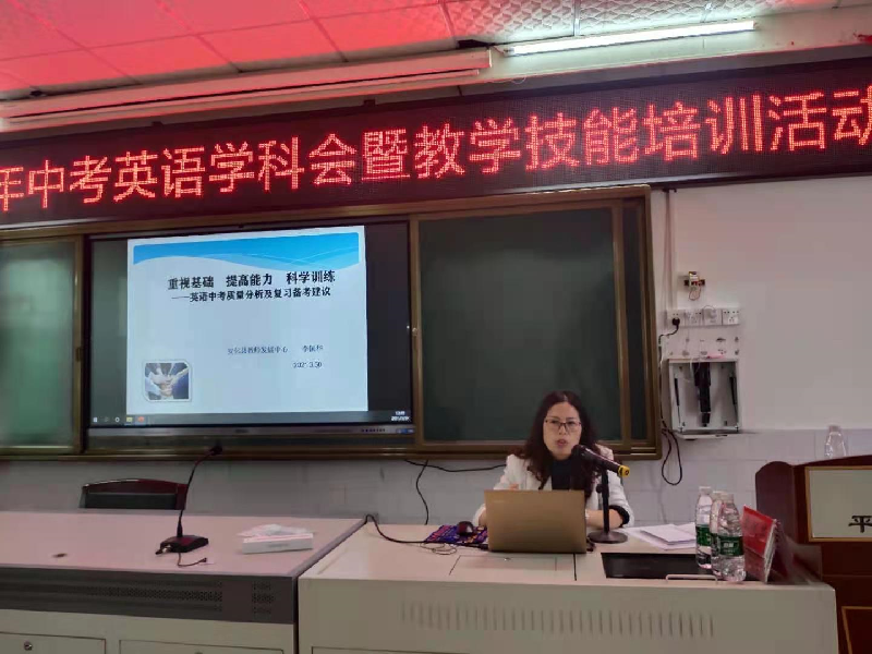 本网讯 3月30日,安化县初中毕业班英语教师齐聚平口镇中学,参加安化县2021年中考英语学科会暨教学技能培训活动,全县各初中毕业学校近150人参与,活动由安化县教师发展中心、英语教研员李佩华主持。 上午8点整,该校校长蒋苏会代表学校向所有到来的领导、专家和老师致以最热烈的欢迎;教师发展中心副主任邓健讲话,用“感谢、希望、祝愿”三个词语,表达了对本次活动的殷切希望。 平口镇中学刘丽珠、思源实验学校谌岳辉与东坪镇中学刘佳华三位老师上了三堂精彩纷呈的复习示范课。教学手段多样,课堂气氛热闹,充满激情,注重复习课的针对性、时效性。随后,来自梅城镇中学易乐荣、平口镇中学刘艳霞两位老师对三堂示范课予以课例点评,梅城镇中学夏亚辉、酉州学校刘文娟、江英学校夏琳三位久经沙场的老师进行了中考备考经验介绍,结合各校备考实践与优秀做法,纷纷表示要加强团队协作、博采众长,注重集体备课,科学规划、激发潜能、搞好培优补潜工作,定期检查,查漏补缺、注重常规落实,搞好小组建设,发挥学生主体地位等复习策略建议。 顾不上休息,下午1点又开启充实的学习之旅。英语教研员李佩华作了《重视基础,提高能力,科学训练——英语中考质量分析及复习备考建议》的主旨讲座,从“数”说历年中考质量及排名、科学解析中考试题及应对策略、复习备考建议等三个方面展开,要求备考要有计划性、科学性,以本为本,回归教材,试题分析及技巧指导要有策略。 活动中,还面对面解析了毕业班教师的疑难杂症,还对授课教师与经验分享的教师进行了颁奖。(通讯员 彭忠德)