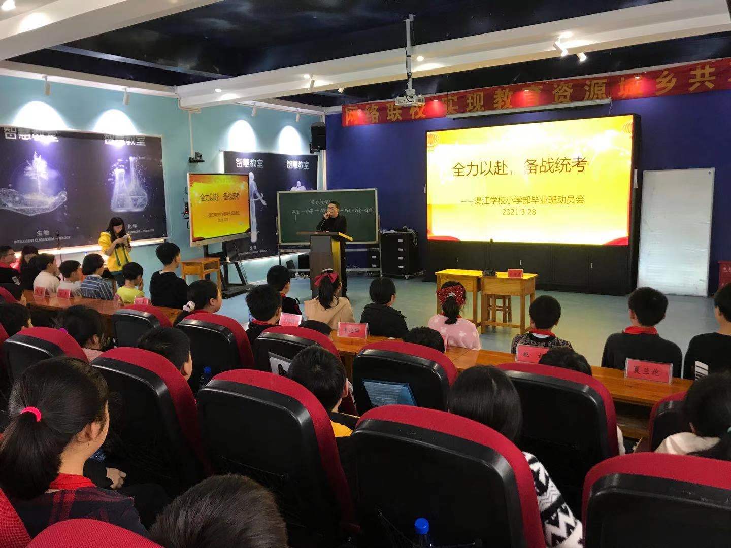 本网讯 3月28日下午2点,渠江学校小学部六年级全体师生齐聚智慧教室举行毕业班学生学习动员会。 会议由任课教师张彦彦主持,首先教导主任余远红分享了前几届毕业班学生的“硕果”,并分析了本届学生的学习现状,勉励在场的108位毕业班学生要以学哥学姐为榜样,提高认识,明确目标,讲究方法,主动学习,做到五门功课均衡发展。接着四位学生代表分享了自己宝贵的学习经验,并号召同学们在最后一学期里努力学习、积极向上。教师代表张彦彦老师给学生分享了冲刺期间的学习建议,带领孩子们呐喊,为同学们加油鼓劲。最后小学部胡敏校长作了全面总结,勉励毕业班全体学生把握这小学阶段的最后三个月,全力以赴,向学校、向老师、向家人交上一份满意的答卷。 |