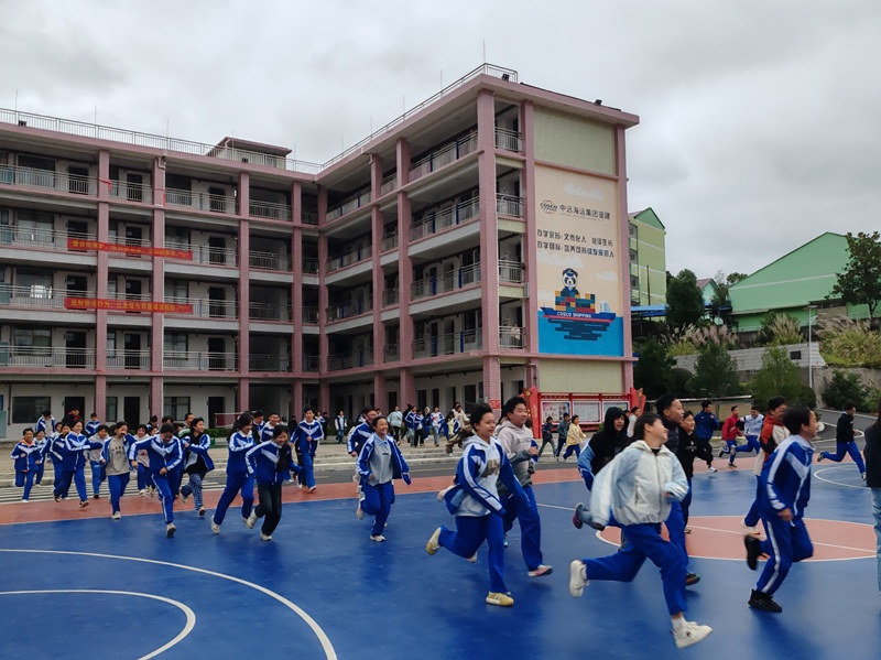 本网讯 10月21日,烟溪镇中学开展防踩踏安全疏散演练活动,筑牢校园安全防线。 随着急促的警报声在校园内响起,演练正式拉开帷幕。全体学生在老师的指引下,严格按照学校制定的疏散路线,迅速、有序地离开教室,向楼下安全区域撤离。整个过程紧张而不慌乱,密集而不拥挤。到达楼下后,学生们随即跑步前往指定的安全集合地点,并以班级为单位快速整队、清点人数。 演练结束后,学校政教主任刘武辉对本次活动进行了总结。他肯定了同学们在演练中表现出的良好秩序和快速反应能力,并再次强调了掌握安全疏散知识、提升紧急避险能力的重要性。 初审初校:谌盛琴 复审复校:刘洪丁 终审终校:刘开颜