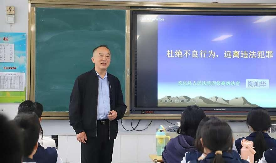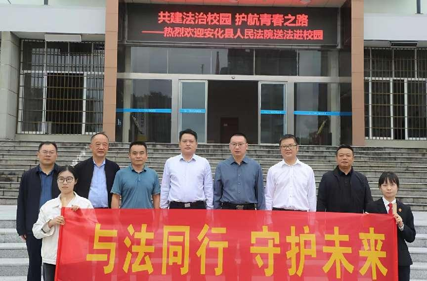 本网讯 9月24日,安化二中法治副校长、县人民法院党组书记、院长程新建率队到安化二中开展“送法进校园”普法宣传活动。学校党委副书记、校长陈立辉等班子成员热情接待并参与活动。