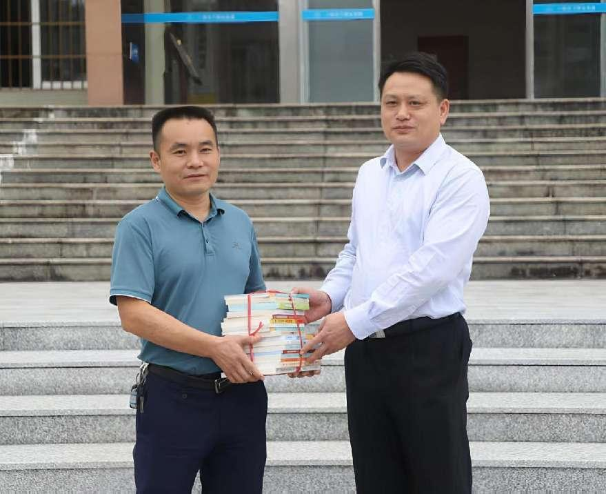 活动中,程新建向安化二中捐赠了一批法治书籍。所赠书籍内容覆盖学校治理、教师执教及青少年普法等领域,为学校常态化开展法治教学补充了优质资源。