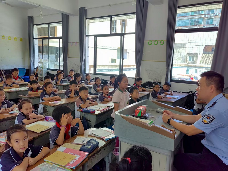 本网讯 近日, 江南镇完小举办了一场筑牢校园安全防线,提高学生的自我防护能力的安全知识宣讲活动。学校特邀派出所教导员彭升龙走进课堂,为孩子们带来了一堂内容丰富、形式生动的反诈与交通安全课。 活动现场,教导员彭升龙针对小学生的年龄特点和认知水平,做了充分准备。反诈宣讲环节,他们摒弃了枯燥的说教,转而运用精心制作的动画短片和发生在身边的真实案例,生动形象地揭穿了“游戏账号诈骗”、“冒充熟人诈骗”等常见骗局,并悉心传授了“不听、不信、不转账”的防骗口诀。交通安全环节,民警则通过展示交通标志图片、模拟交通场景、有奖问答等互动方式,深入浅出地讲解了过马路、乘坐电动车和私家车等日常出行中必须掌握的安全知识和法律法规,强调了“一盔一带”的重要性。 校长姚志军表示,此次活动犹如一场“及时雨”,将安全的种子深深植根于孩子们的心中,极大地增强了学生的辨别能力和风险防范意识,为构建平安、和谐、健康的校园环境提供了有力保障。