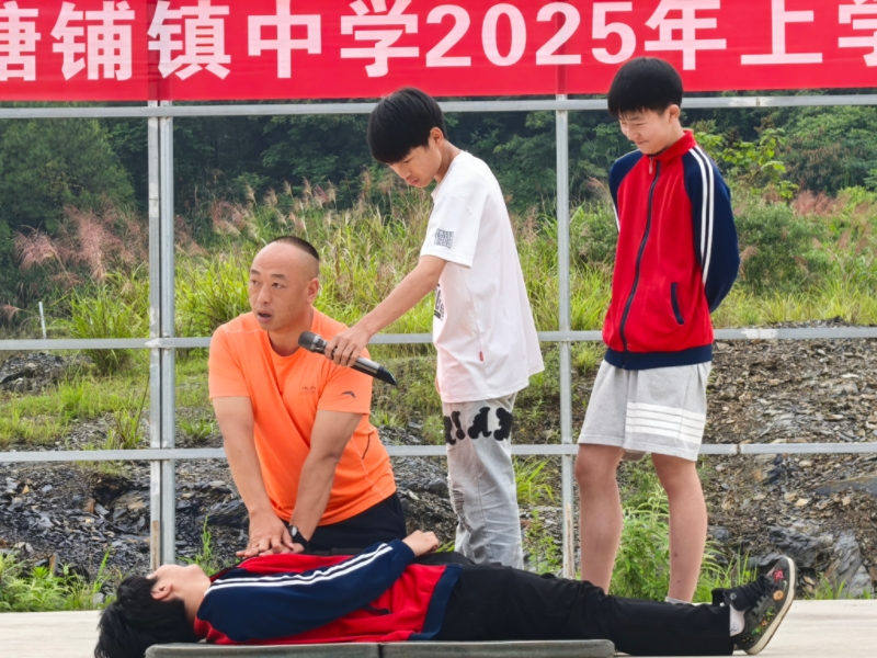 本网讯 6月9日,清塘铺镇中学在学校田径场举行2025年上学期防溺水安全演练活动。活动由政教处副主任吴丹主持。 演练活动紧贴实战,通过情景模拟、急救实训等多种形式,重点演示了如何利用身边易得的物品如竹竿、救生圈等简易救援工具,进行科学、安全的施救。在老师的指导下,学生现场学习了“趴地牵引”和“抛物救援”等智慧施救法。现场急救技能实训是本次演练的核心环节。周富强老师分步骤、详细地讲解并演示了溺水者上岸后的关键急救措施,包括:清除口鼻异物,确保溺水者呼吸道畅通;胸外按压:掌握正确的按压位置、深度和频率,为心跳骤停者提供循环支持;人工呼吸:配合胸外按压,进行有效通气。 吴丹在总结中强调,严禁学生在无专业保护的情况下擅自下水施救或采取“手拉手”式救援,从而将防溺水“七不两会”安全准则与实用自救互救技能深度融合,为全校师生构筑起坚实的安全防线。 初审初校:张剑文 复审复校:刘精快 终审终校:刘丽莉