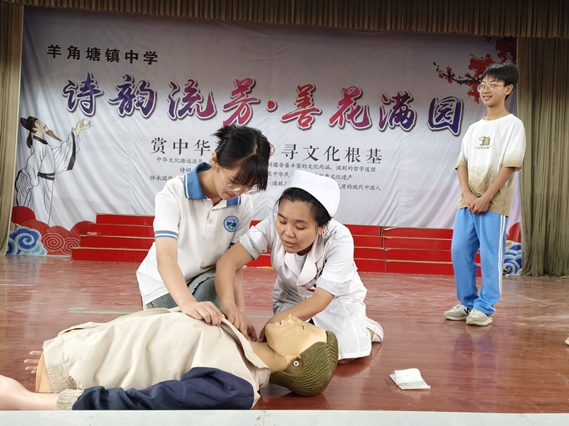 本网讯 6月9日,羊角塘镇中学联合镇卫生院开展防溺水应急演练活动,为学生的生命安全构筑坚实防线。 演练前,卫生院医护人员通过生动形象的案例,向学生们详细讲解了溺水的危害、预防溺水的措施以及溺水时的自救方法。同时,重点强调了防溺水“七不两会”内容及“五种危险涉水行为”,学生们认真聆听,积极互动,现场学习氛围浓厚。 随后,防溺水应急演练正式开始。模拟场景中,一名“学生”在河边玩耍时不慎落水,同伴发现后立即大声呼救,并迅速拨打120急救电话,同时找来长竹竿、救生圈等工具进行施救。学校应急救援小组接到消息后,第一时间赶赴现场组织救援,将“落水学生”成功救上岸。 卫生院医护人员迅速对“溺水学生”展开急救,他们熟练地进行清除口鼻异物、打开气道、心肺复苏等操作,整个急救过程规范、有序。医护人员一边操作,一边向师生们讲解每个步骤的要点和注意事项,让大家更直观地学习到正确的急救方法。 演练结束后,学校负责人对本次活动进行总结,再次强调了防溺水安全的重要性,要求全体学生将安全知识牢记于心,杜绝溺水事故的发生。 初审初校:李颖慧 复审复校:杨建伟 终审终校:夏赞斌