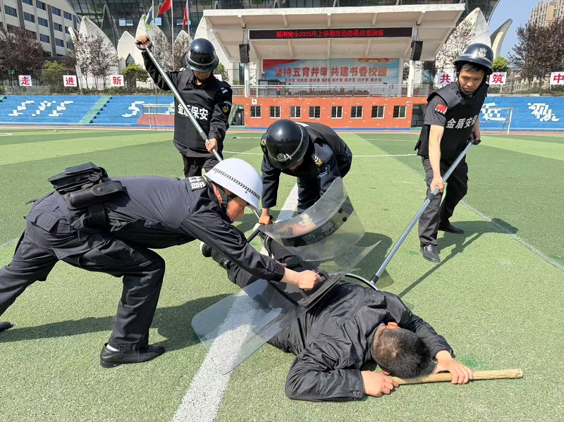 本网讯 4月18日,东坪镇城南完小利用课间操时间开展了一场反恐防暴应急演练,四年级全体师生参与其中。 演练模拟了一名“歹徒”持械强行闯入校园的场景。上午10时,当“歹徒”企图冲入校园时,保安人员立即启动一键报警系统,并手持防暴器械与之周旋。学校随即启动反恐防暴应急预案,通过广播系统向全校师生发出紧急避险指令。四年级学生在班主任的有序组织下,按照预定疏散路线快速撤离至安全区域。整个撤离过程紧张有序,师生们配合默契。与此同时,校园安保人员迅速响应,与“歹徒”展开激烈搏斗,最终成功将其制服,演练任务圆满完成。 演练结束后,学校相关负责人进行总结点评,强调校园安全是重中之重,必须时刻绷紧安全弦,把预防工作做在前面。通过此次演练,不仅检验了学校应急预案的可行性,也提高了师生的安全意识和应急处置能力。 据悉,城南完小始终将校园安全工作放在首位,定期开展各类安全演练活动。此次反恐防暴演练是学校“安全教育月”系列活动的重要组成部分,为创建平安校园奠定了坚实基础。 初审初校:蔡丽旭 复审复校:封卫华 终审终校:张密田