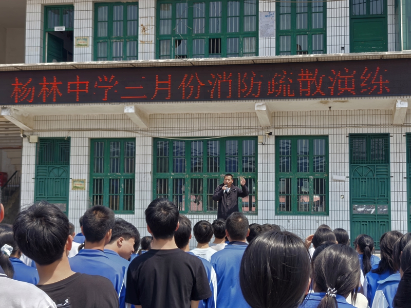 本网讯 3月27日,杨林中学举行安全逃生疏散演练活动。 随着火灾紧急疏散警报响起,各班学生在班主任的组织带领下,捂着鼻子、躬着身子依次离开教室,按指定逃生路线迅速地从教学楼撤离到学校操场。抵达操场后,各班安全委员立即清点学生人数,并报告总指挥。全校350名师生安全撤离到操场总用时2分48秒。 疏散演练结束后,政教主任王择政对师生进行了简单的消防安全知识培训,党支部书记、校长李欧对本次消防紧急疏散演练活动进行了总结,对师生们的表现给予了充分肯定,同时也强调了学校安全工作的重要性。他表示,学校将继续加强安全教育,提高师生们的安全意识和应急能力,为创建平安校园奠定坚实的基础。 初审初校:罗 毅 复审复校:王择政 终审终校:李 欧