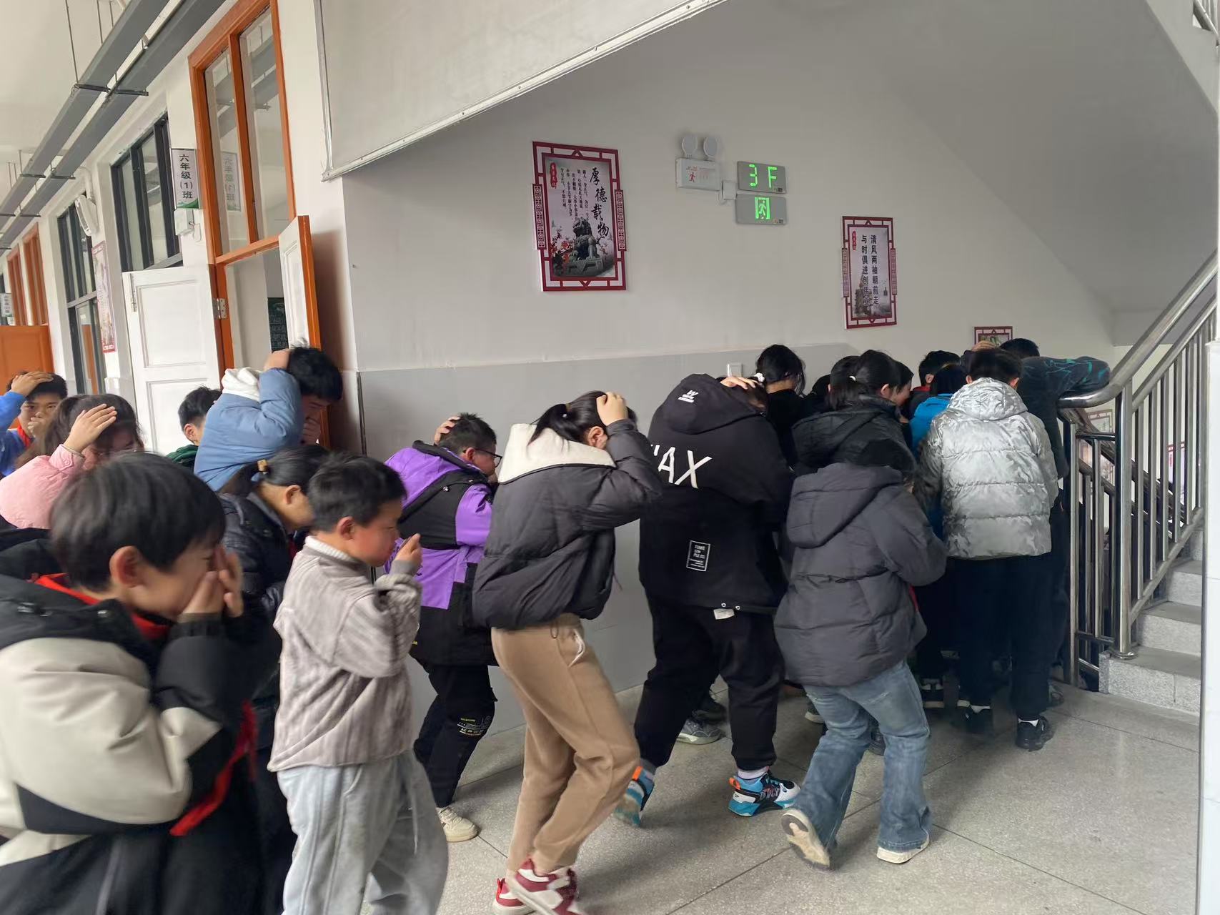 演练于中午写字课中途启动。警报响起,总指挥李仁下令启动预案,副总指挥李哲华现场指挥,广播组发出信号,各班师生按预定路线疏散。遵循先低层后高层原则,学生们捂住口鼻、抱头,成双列纵队有序下楼,迅速在操场集合。