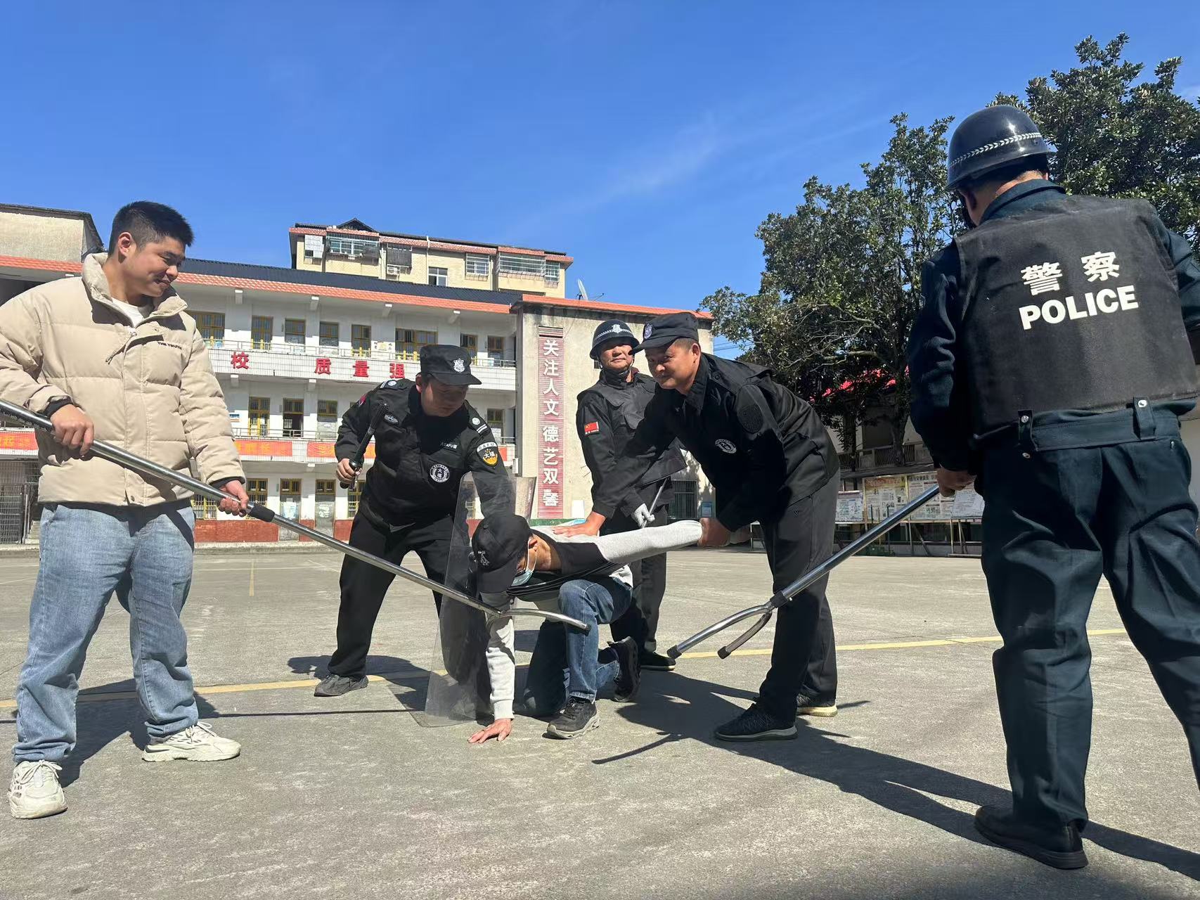 本网讯 11月27日,大福镇完小开展应急防暴演练。 演练开始前,该校就本次演练做了具体的部署,该校校长林颖对学校应急小分队进行了专题培训,组织学习了《防暴应急演练方案》,进一步强调了各自的职责,并根据演练主题场景模拟,明确了具体的避险方式,确保本次活动的顺利开展。 演练过程中,全校师生共同参与,按照预先制定的方案,快速响应。在模拟的紧急情况下,学生们跟随老师引导,迅速撤离到安全区域,并进行了躲避暴力袭击、报警等实际操作演练。整个演练过程紧张有序,全校师生均能够迅速、准确地应对紧急情况。 初审初校:姚俊 复审复校:黄红 终审终校:林颖 ![]()